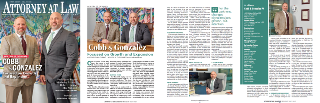 That client-first philosophy remains the firm’s anchor, even as Cobb & Gonzalez enters a new phase of growth and evolution. Since the firm was last featured, significant changes have taken shape. One of the more significant of these is a leadership transition that reflects both maturity and forward momentum. Co-founder James Gonzalez has assumed the role of managing partner, a shift that underscores the firm’s commitment to strategic expansion while preserving the culture and values that built its reputation.